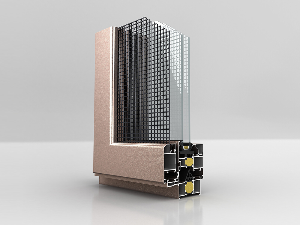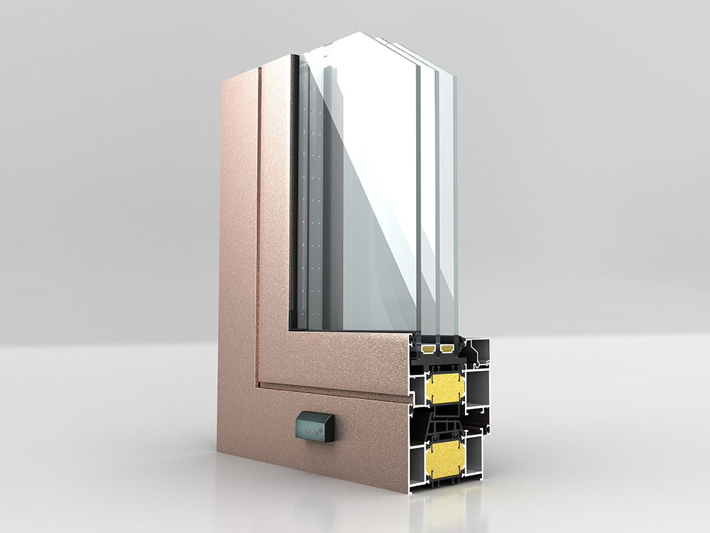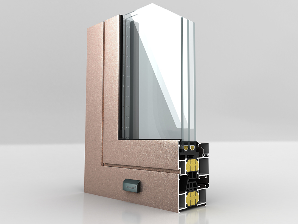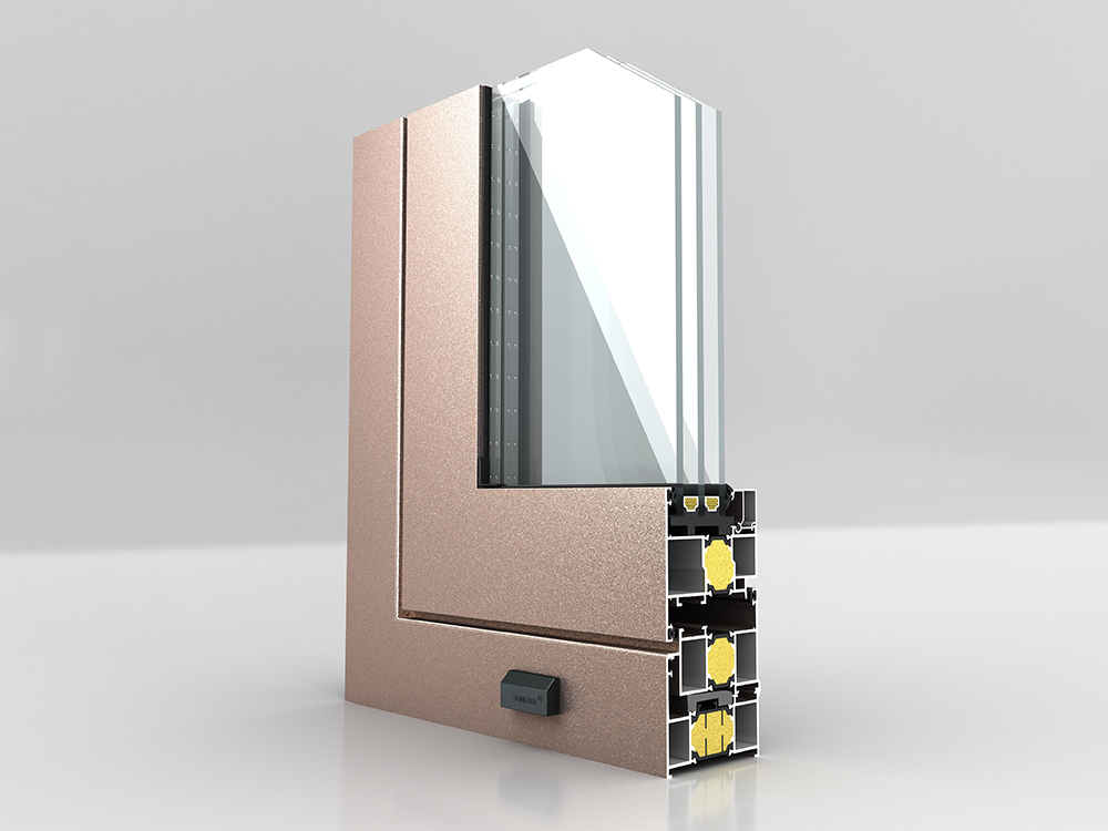 ■ 机械复合三腔结构;采用44mm宽PA66隔热条 ■ 隔热条腔内采用高压注高分子保温材料;连续等温面设置 ■ 外框配下沉式排水面;配可开启式排水孔盖 ■ 型材壁厚框、扇均为1.8mm ■ 外框深度85mm;可做内外双色喷涂 ■ 内开窗可配开启纱窗 ■ 玻璃标配47mm,